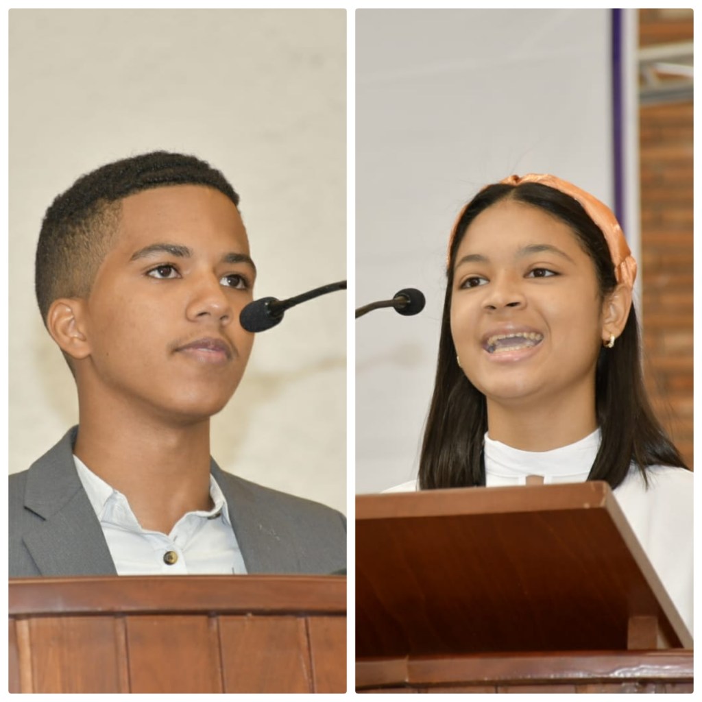 Los estudiantes Azael Francisco de los Santos y Katherine Parra se dirigieron a los nuevos docentes y les recordaron todo aquello que esperan de sus maestros, el impacto que tendrán en sus vidas y en toda la sociedad dominicana.