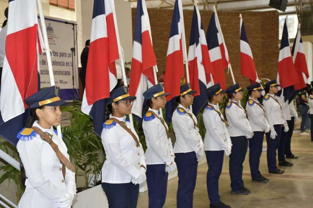 El acto celebrado en el edificio Multiuso de la PUCMM, inició con un colorido y rítmico desfile de los abanderados y del batón ballet del Politécnico Nuestra Señora de las Mercedes.