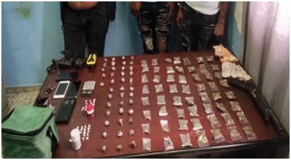 A los tres últimos, residentes en La Vega, además de las porciones de presunta droga, también se les ocupó una balanza marca Tanita, una calculadora, tres teléfonos celulares, una motocicleta, dinero en efectivo, un arma de fabricación casera, denominada “chagón” y dos relojes.