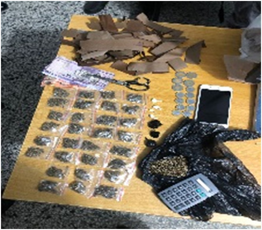 Entre los detenidos figura el presunto distribuidor de narcóticos Cristofer Hidalgo, de 21 años, residente en el barrio San Lorenzo, a quien le ocuparon treinta y tres porciones del vegetal y otras cuatro porciones de un polvo blanco, que se presume es cocaína, además de la bucheta anteriormente mencionada; una calculadora, una pistola de juguete, unas tijeras y dinero en efectivo.