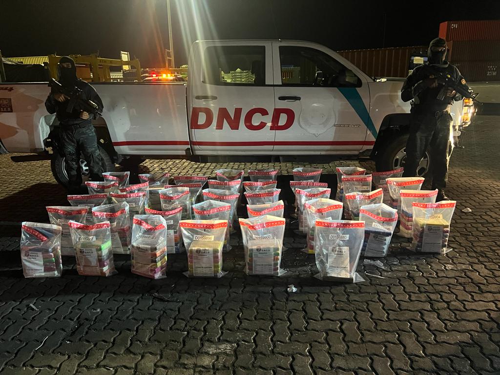 Santo Domingo.- La Dirección Nacional de Control de Drogas (DNCD) con apoyo de la Seguridad Militar del Puerto Multimodal Caucedo, agencias de inteligencia del Estado y bajo la coordinación del Ministerio Público, incautaron 223 paquetes presumiblemente cocaína, en medio de un operativo de interdicción, realizado en el referida terminal, durante la noche y madrugada de este miércoles.
