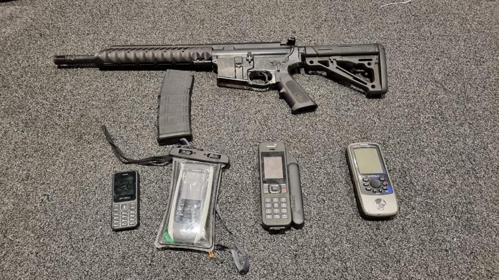 En la operación conjunta, se ocupó un fusil AR-15 con su cargador y 23 cápsulas, un teléfono satelital, un celular, dos GPS, seis garrafones de combustibles, una neverita de playa, con agua y bebidas energizantes, entre otras evidencias.
