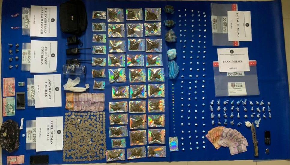 El Ministerio Público y la DNCD, ocuparon además cuatro pistolas, 21 armas blancas, 26 balanzas, 31 motocicletas, 125 celulares, 235, 167 pesos y 105 dólares, entre otras evidencias.
