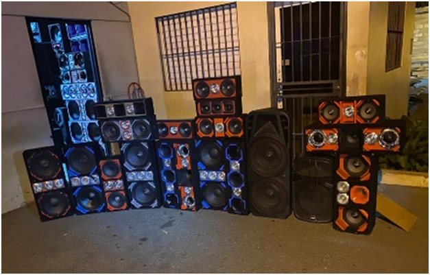 Santiago, Rep. Dom.-Miembros de la división de Anti-ruidos de la Policía Nacional incautaron 20 cajones de bocinas por contaminación sónica, durante operativos realizados el fin de semana.