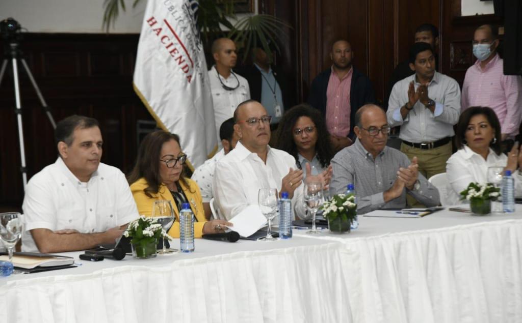 El acto, en la forma presencial, fue encabezado por los ministros de Hacienda Jochi Vicente, el presidente del Senado Eduardo Estrella, la gobernadora Rosa Santos, el asesor del gobierno Andrés Bautista, director de Proindustria Ulises Rodríguez, director general de Coraasan Andrés Burgos, el gerente general de Edenorte Andrés Cueto, la directora Regional de Educación Marieta Díaz, entre otras autoridades.