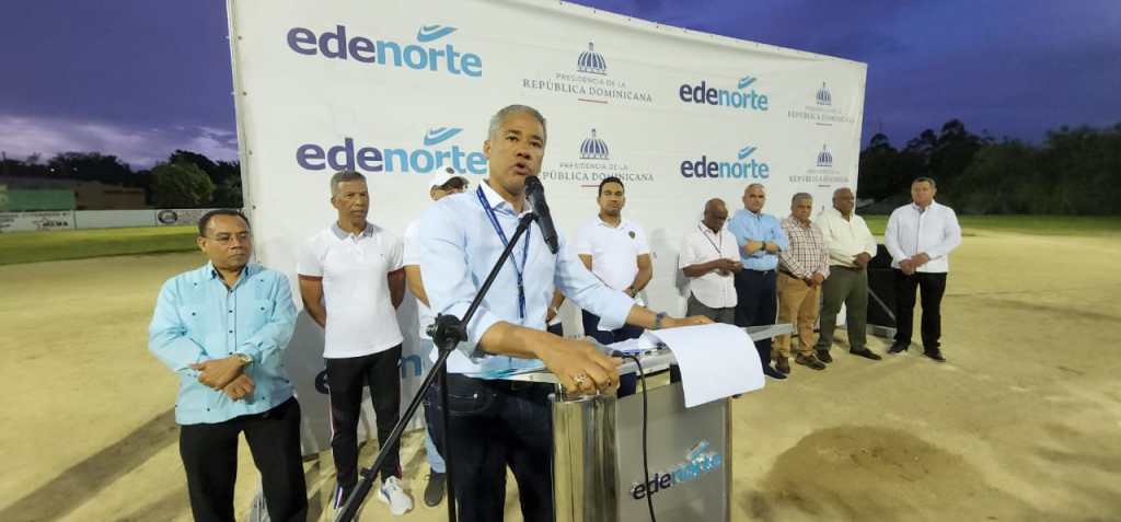 Santiago.-El ingeniero Andrés Cueto Rosario en su calidad de gerente general de La Empresa Distribuidora de Electricidad del Norte S.A. (EDENORTE Dominicana S.A.), dejó inaugurada la noche de este martes la remozada iluminación del Estadio de Softbol César Delmonte y Consuegra, el cual pertenece a la benemérita Asociación de Cronistas Deportivos de Santiago (ACDS), el cual está ubicado en el complejo deportivo de la Barranquita.