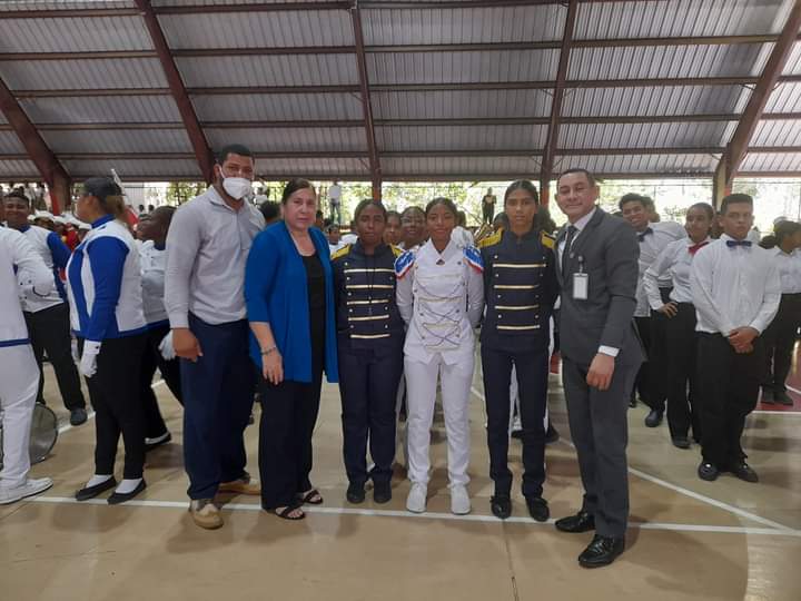 Un despliegue de grupos estudiantiles alineados en el tabloncillo del Club Plaza Valerio y una emotiva ceremonia encabezada por la subdirectora de la Regional 08 del MINERD, Yolanda Jáquez.