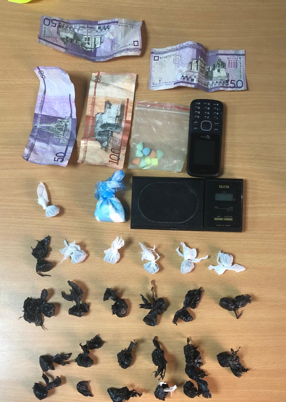 Laguna Salada, Valverde.-Miembros preventivos y de investigaciones criminales (DICRIM) desmantelaron ayer un punto de venta y distribución de sustancias controladas en el sector Serranos del distrito municipal de Jaibón, de este municipio, donde fueron ocupadas 26 porciones de presunta marihuana y cocaína, además de nueve pastillas de presunto éxtasis.