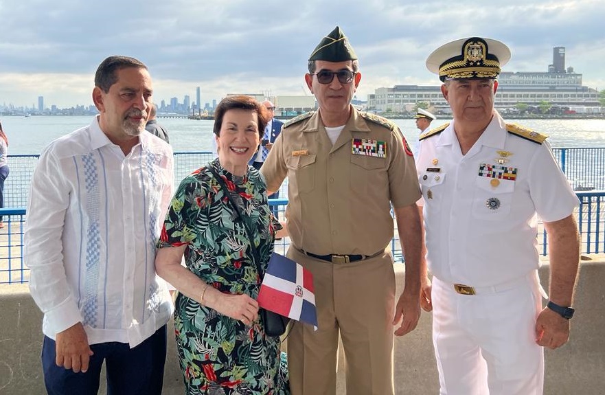 NUEVA YORK.- La embajadora dominicana en los Estados Unidos, Sonia Guzmán, acompañó la delegación oficial que dio la bienvenida a la Armada de República Dominicana, la cual arribó a Nueva York en el buque del Patrullero de Altura ‘Alm. Didiez Burgos’, PA-301, ARD, y del Buque Escuela ‘Alm. Juan Bautista Cambiaso.