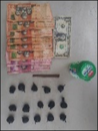 Además de las porciones, también se le ocupó la suma de mil pesos en efectivo y un dólar americano, por lo que será puesto por ante el Tribunal de Niños, Niñas y Adolescentes, para los fines correspondientes.
