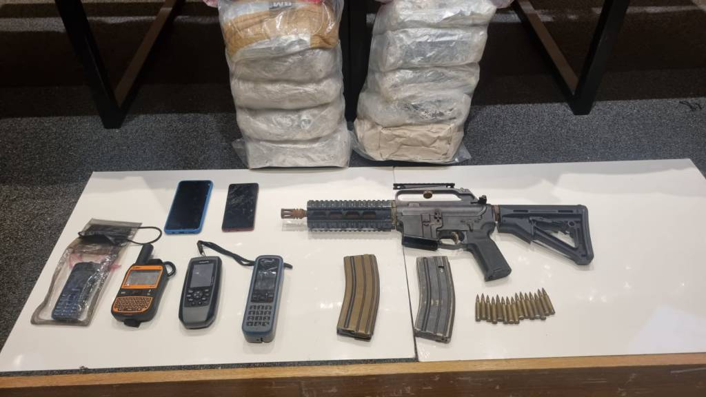 En la operación se ocupó un fusil calibre 5.56, con dos cargadores y varias cápsulas, tres celulares, un teléfono satelital, dos GPS, 18 garrafones de combustibles, entre otras evidencias.