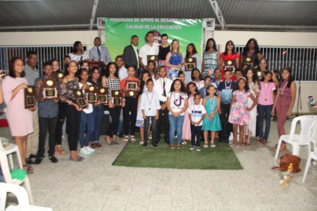 Los estudiantes homenajeados recibieron medallas y placas en reconocimiento a sus altas calificaciones , disciplina y capacidad de servicio comprobada en la escuela y la comunidad donde viven.