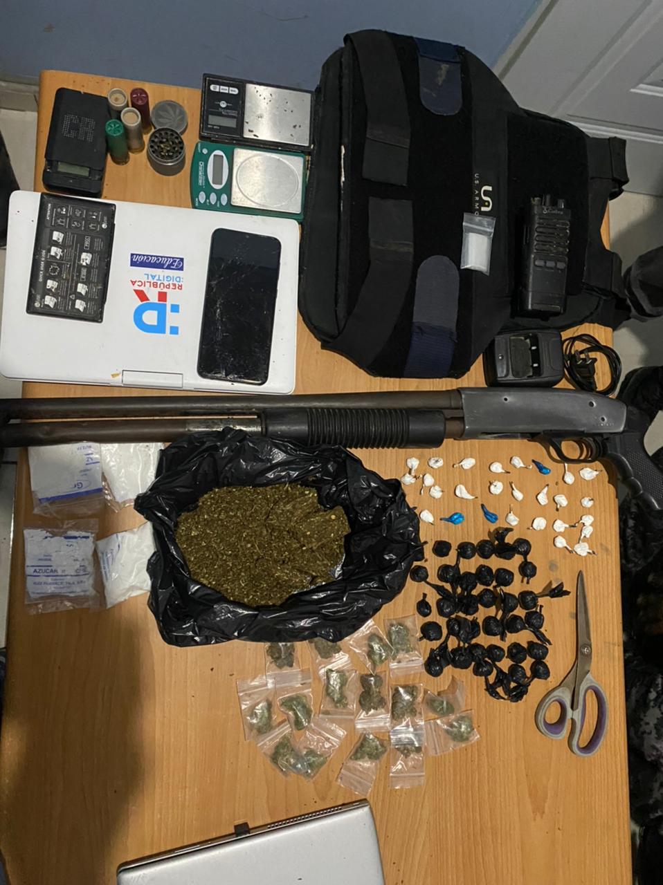 El detenido es Luis David Francisco Jiménez, de 29 años, residente en el barrio La Fe, a quien también se le ocupó tres balanzas, un radio de comunicación, cuatro cartuchos calibres 12, un triturador de marihuana, unas tijeras, un chaleco antibalas de color negro, un triturador de marihuana y un teléfono celular.