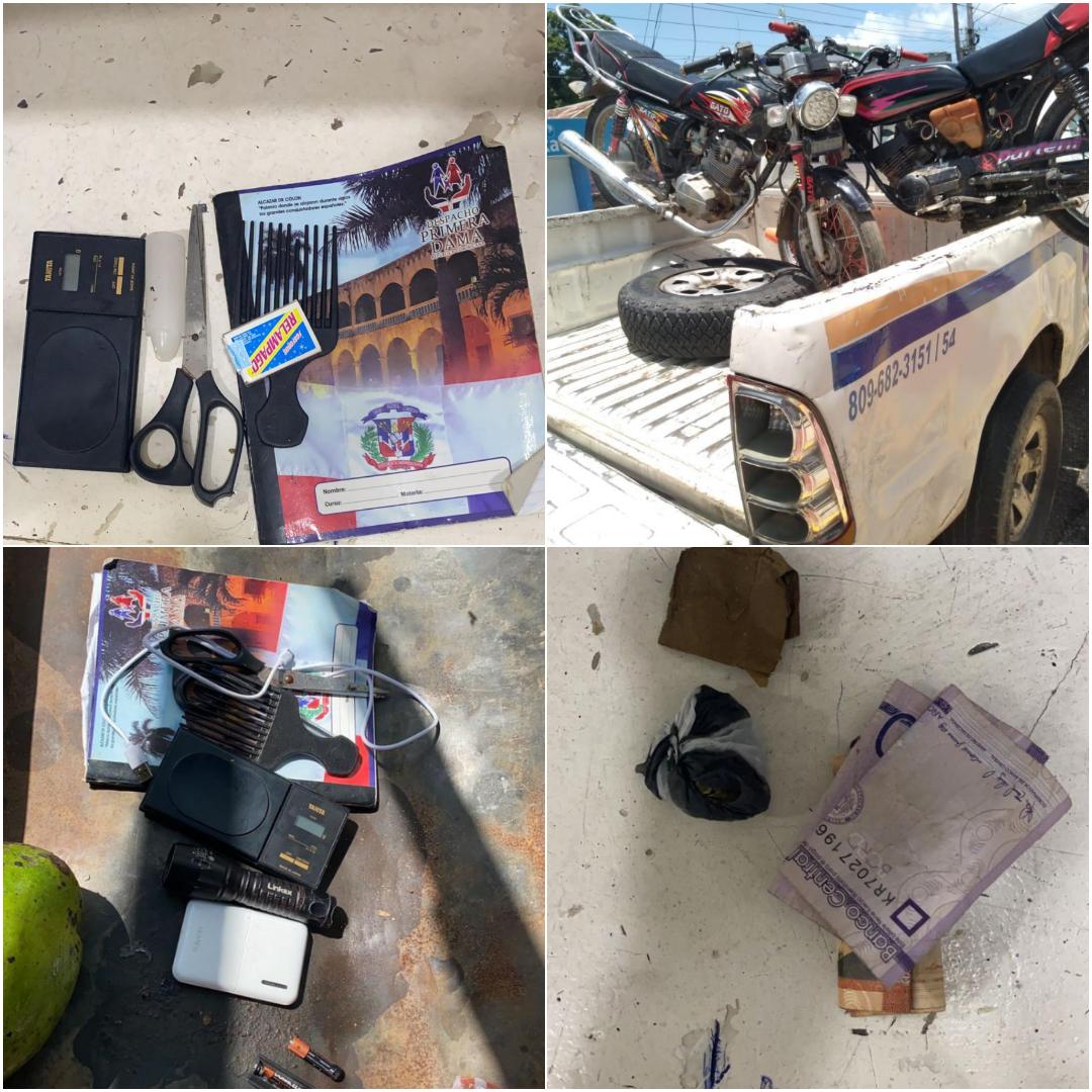 Loma de Cabrera, Dajabon.- Miembros preventivos y el Dintel de la Policía Nacional apresaron en el barrio El Tanque, de este municipio, a nueve personas, donde fue desmantelado un punto de venta y distribución de sustancias controladas y se ocuparon tres motocicletas y una porción de presunta marihuana.