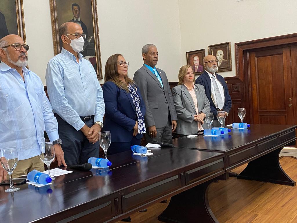 Lucildo Gómez, Subdirector de Información y Prensa de la Presidencia, Andrés Burgos director de Coraasan, Federico Reinoso director de Medios de la Dirección General de Estrategia y Comunicación Gubernamental (Diecom) y el Dr. Virgilio Gutiérrez, director provincial de Salud Pública en Santiago.