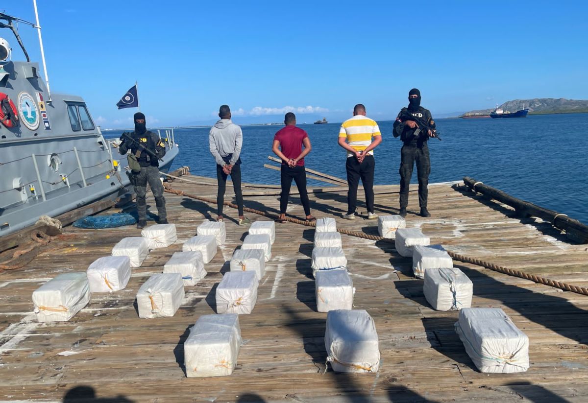 “Los ocupantes de la embarcación de color azul, sin nombre ni matricula, se presume que llegaron a costas dominicanas, procedente de Sudamérica, mientras el Ministerio Público y la DNCD profundizan la investigación para arrestar a otros implicados en la frustrada operación de narcotráfico internacional”