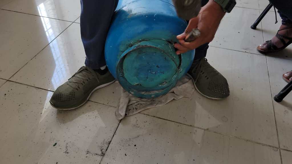 Tras su detención se procedió, junto a un fiscal adjunto, a inspeccionar el cilindro de 25 libras, en cuyo interior se ocuparon 16 paquetes del vegetal con un peso preliminar de 18 libras.