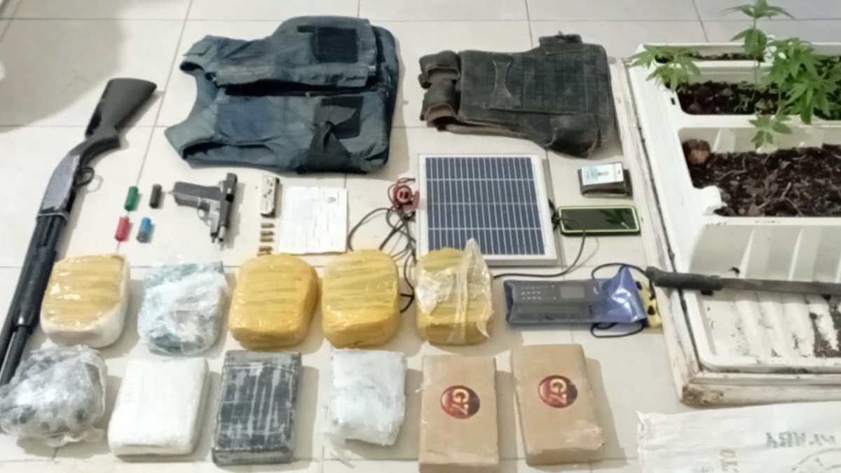 También fueron ocupadas varias plantaciones del mencionado vegetal verde, que los individuos tenían ocultas con tierra negra en la puerta de una nevera, así como dos chalecos anti balas, un machete, un panel solar pequeño y un teléfono satelital, que tenían cubiertas con varias palmas.