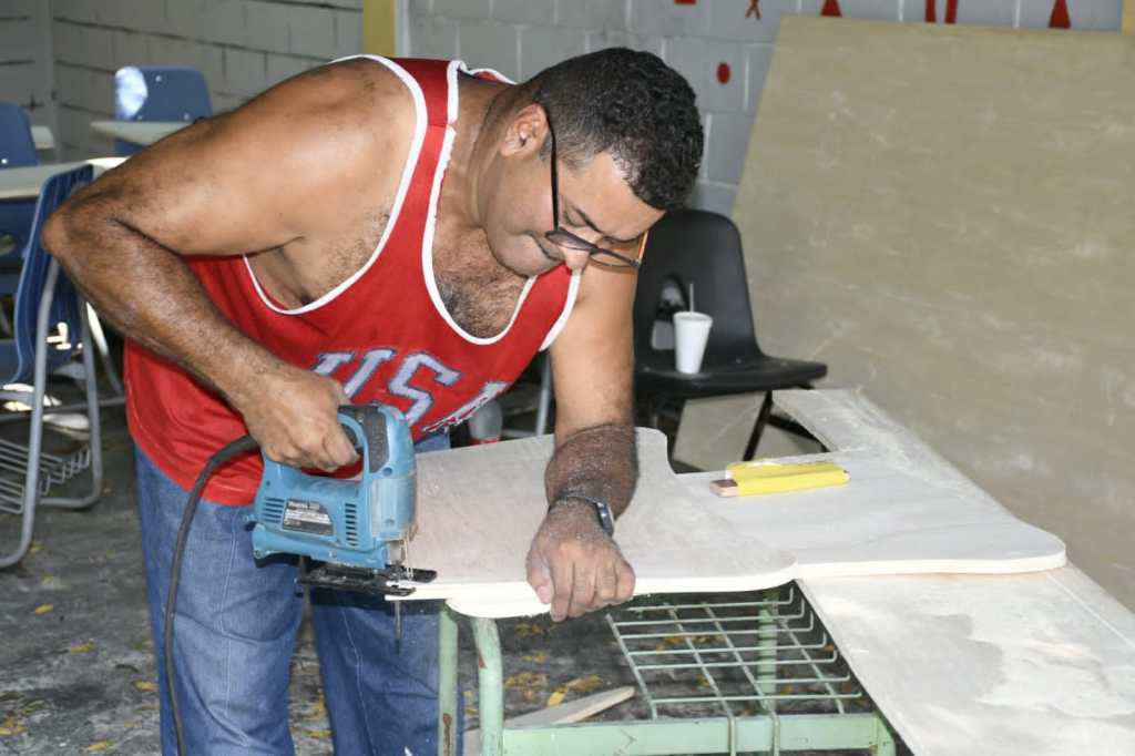 En el Politécnico Juan Antonio Flores opera uno de los talleres donde son reparadas las butacas que envían los centros educativos, en algunos casos asientos que llevaban años dañados.