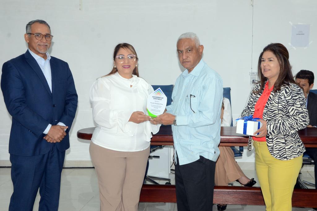 Al final del concurrido evento el periodista Ricardo Rodríguez Rosa recibió una distinción por ser el primer secretario general de la filial Santiago de ADOMPRETUR, gesto que agradeció a Gladialisa Pereyra y demás integrantes del actual equipo directivo.