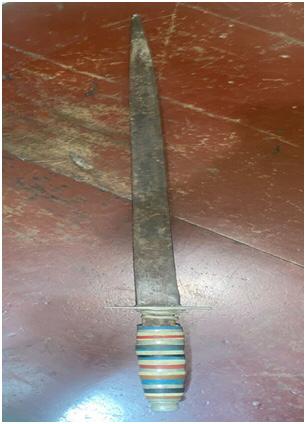 Al momento del arresto del nombrado Ángel Oniel González Salcedo, apodado “Chino”, los agentes policiales actuantes le ocuparon un arma blanca, tipo puñal, de aproximadamente 15 pulgadas de largo.