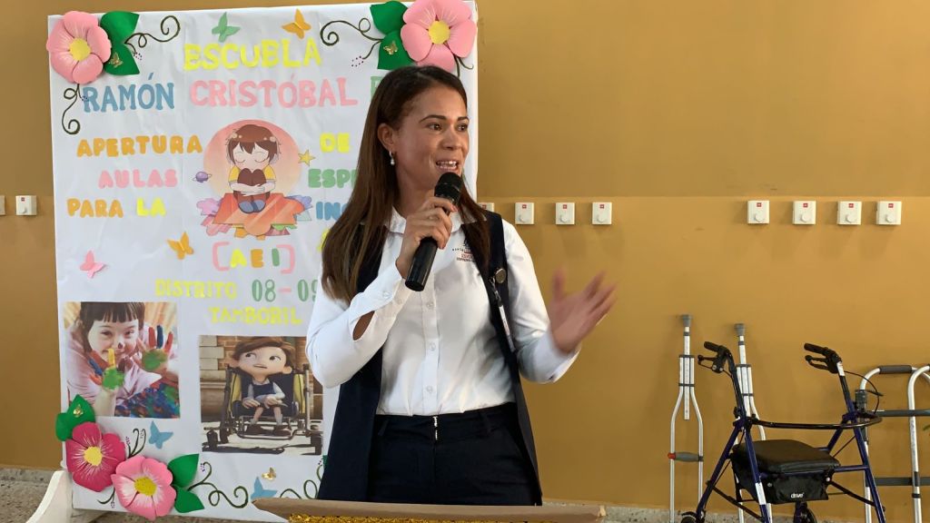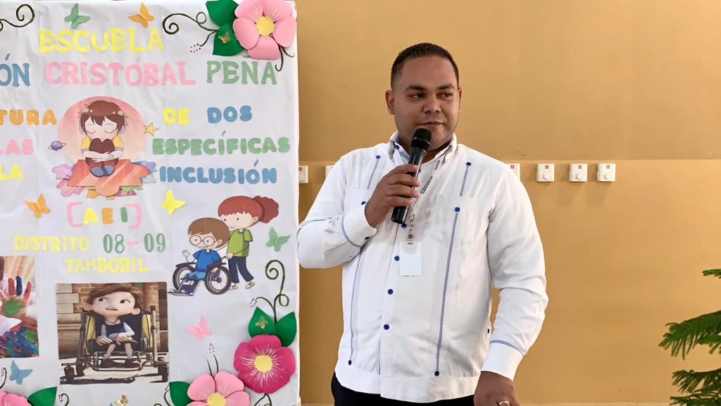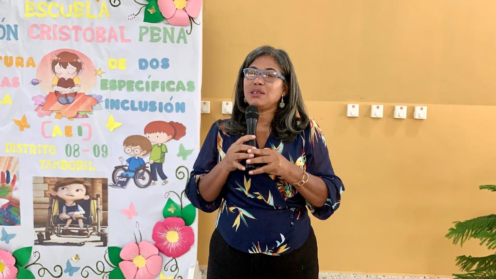 La directora del centro educativo Ramón Cristóbal Peña, Jacqueline Meléndez, ofreció las emotivas palabras de bienvenida y dijo que es un honor para su escuela haber sido elegidos para brindar un servicio tan especial como es la atención a la diversidad y la inclusión; siendo el mismo un gran reto para la institución y una oportunidad porque ofrece a los niños la posibilidad de ser incluidos.