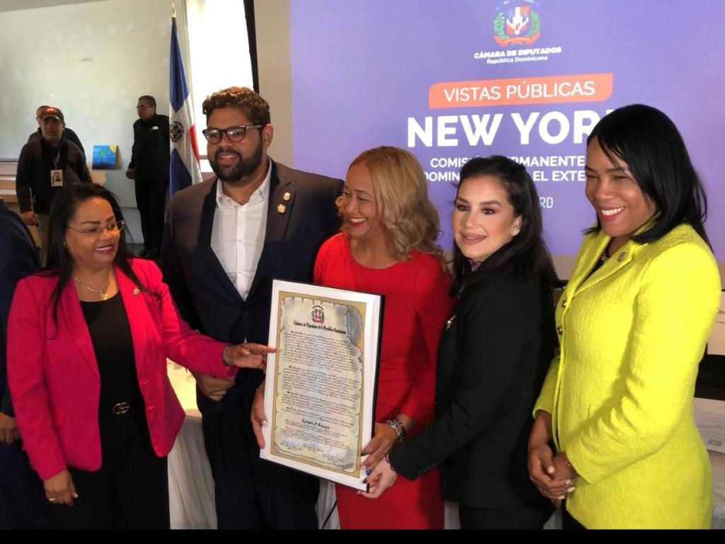 NUEVA YORK, EUA. -La Comisión Permanente del dominicano en el Exterior de la Cámara de Diputados que sesionó en esta ciudad, donde reconoció a un grupo de personas entre ellas,, a la asambleista estatal de origen dominicana, Yudelka Tapia , al senador estatal, Robert Jackson, congresista federal, Adriano Espaillat, al cónsul Eligio Jáquez, entre de otras autoridades dominicanas electas en este Estado y representantes de la comunidad quisqueyanya residente en Estados Unidos de America.