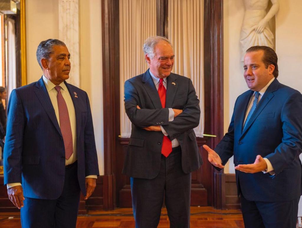 El senador Tim Kaine (D-VA), miembro del Comité de Relaciones Exteriores del Senado (SFRC) y presidente del Subcomité sobre Hemisferio Occidental, Crimen Transnacional, Seguridad Civil, Democracia, Derechos Humanos y Asuntos Globales de la Mujer, concluyeron una semana de viaje por Costa Rica, Panamá y la República Dominicana, que son todos miembros fundadores de la Alianza para el Desarrollo A lo largo de sus visitas, los legisladores expresaron su apoyo y aprecio por la formación de la ADD por parte de los países el año pasado, que se centra en el fortalecimiento de la democracia y la promoción del crecimiento económico entre sus naciones.