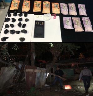 Santiago Rodríguez.-Miembros preventivos y de investigaciones policiales de la Policía Nacional apresaron anoche a tres personas, en un punto de droga desmantelado en el sector Villa Polín, de esta localidad, donde se ocuparon 21 porciones de presunta cocaína, marihuana y crack, además de una balance y dinero en efectivo.