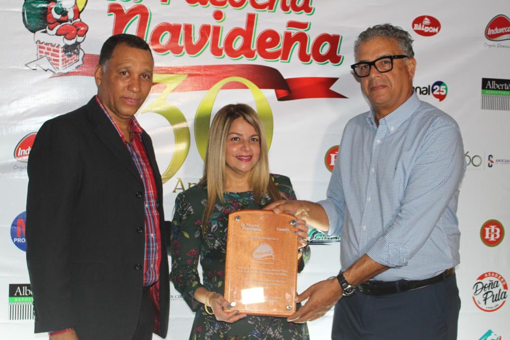 El reconocimiento a Induveca fue recibido por Audry Gómez y Bonelly en representación de Almacenes Marte & Reyes