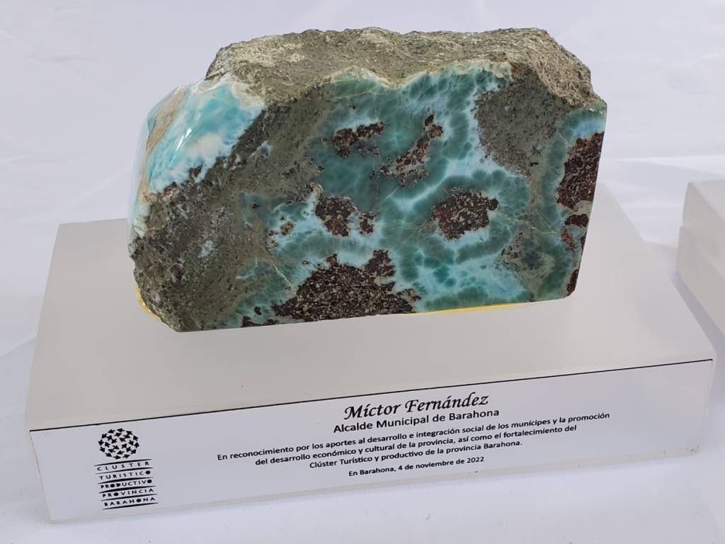 El Dr. Míctor Fernández, alcalde de Barahona, recibió un reconocimiento de manos de Virgilio Pérez Bernal y Elizabeth Tovar, presidente y vicepresidente del Clúster, respectivamente.