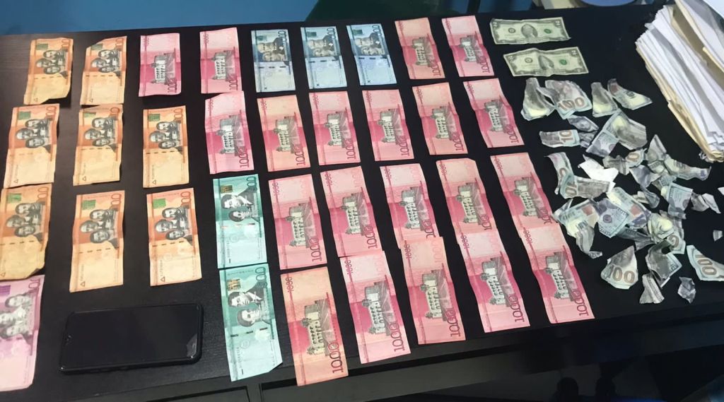 Además de los dólares y la presunta droga, los agentes policiales ocuparon más de 30 mil pesos en efectivo.