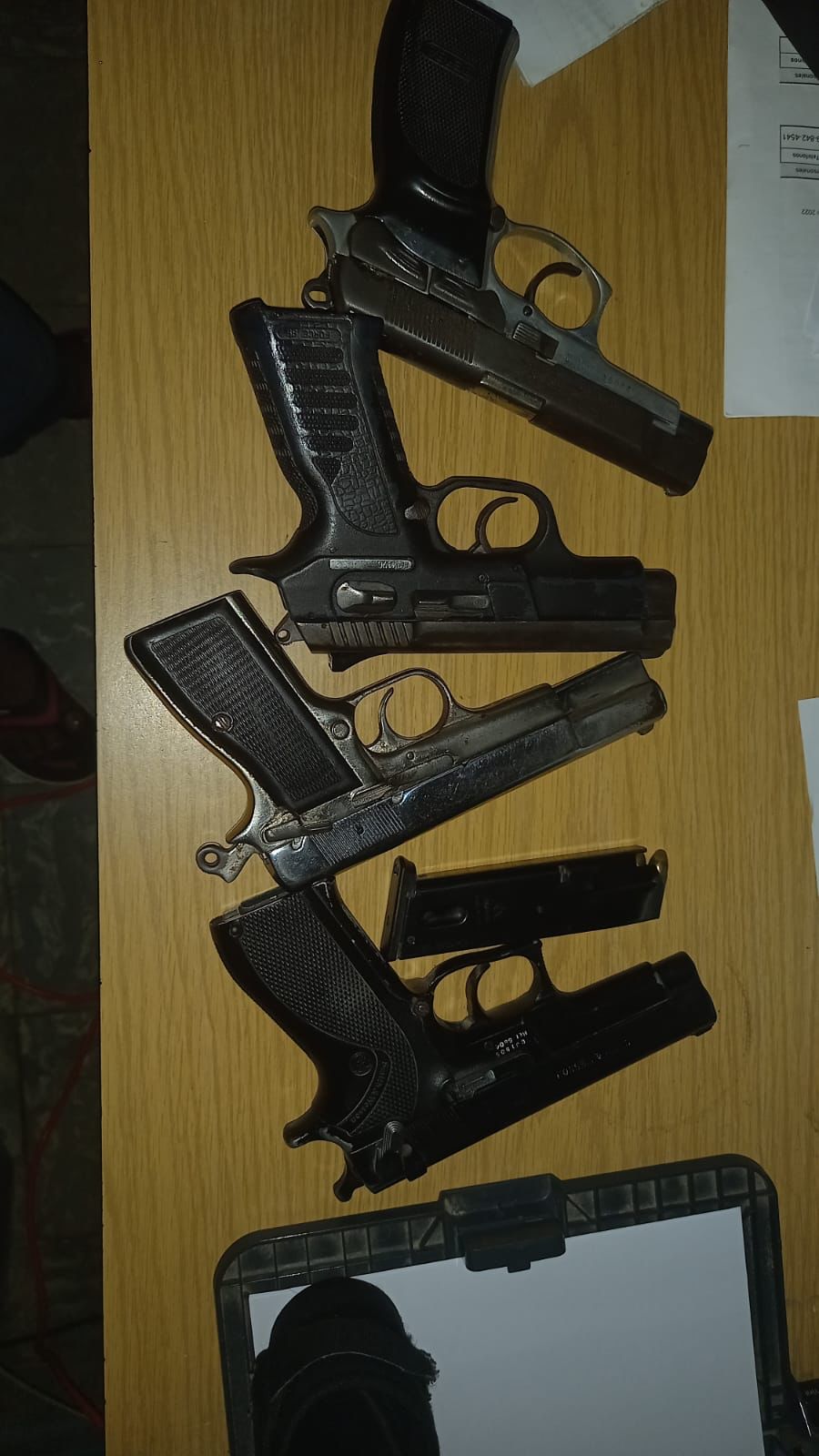 En cuanto a las armas de fuego, cuatro pistolas calibres 9mms, de diferentes marcas, fueron ocupadas en Santiago Rodríguez, con sus licencias de porte y tenencia vencidas, mientras que otra fue ocupada en Montecristi, sin ningún tipo de documento.