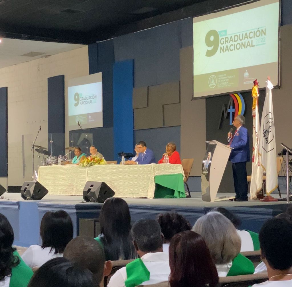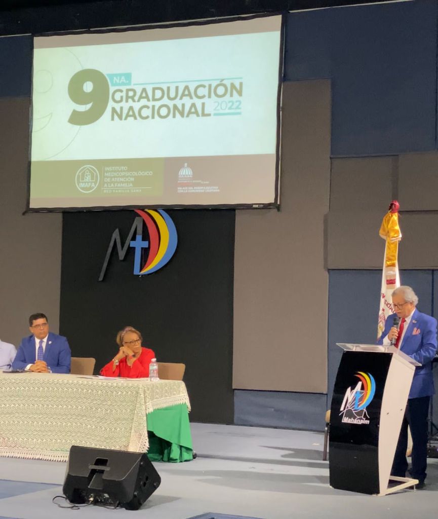 En el acto de graduación, el Dr. José Rafael Dunker, presidente del IMAFA, reflexinó sobre la importancia de la familia en estos tiempos, en los que se promueve abiertamente tantos anti valores que ponen en riesgo la primera célula de la sociedad. Luego de invocar al Todopoderoso, el Dr. Dunker agradeció a la Oficina Enlace en la persona del pastor Dío Astacio por su valiosísimo apoyo a las familias dominicanas.