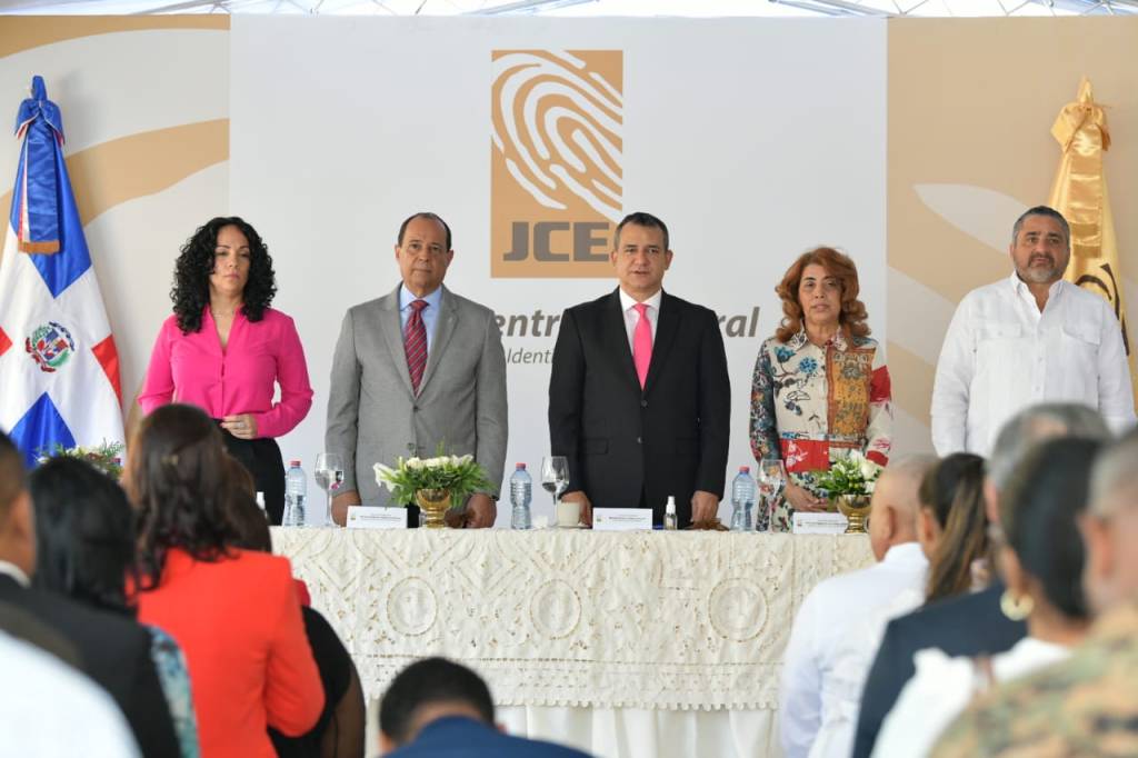 En compañía de los miembros del Pleno, Rafael Armando Vallejo Santelises, Dolores Altagracia Fernández Sánchez, Patricia Lorenzo Paniagua y Samir Rafael Chami Isa, el presidente de la JCE resaltó el compromiso asumido desde noviembre del 2020 de desconcentrar los servicios que ofrece la institución, implementando proyectos para fortalecer el servicio de la identidad.