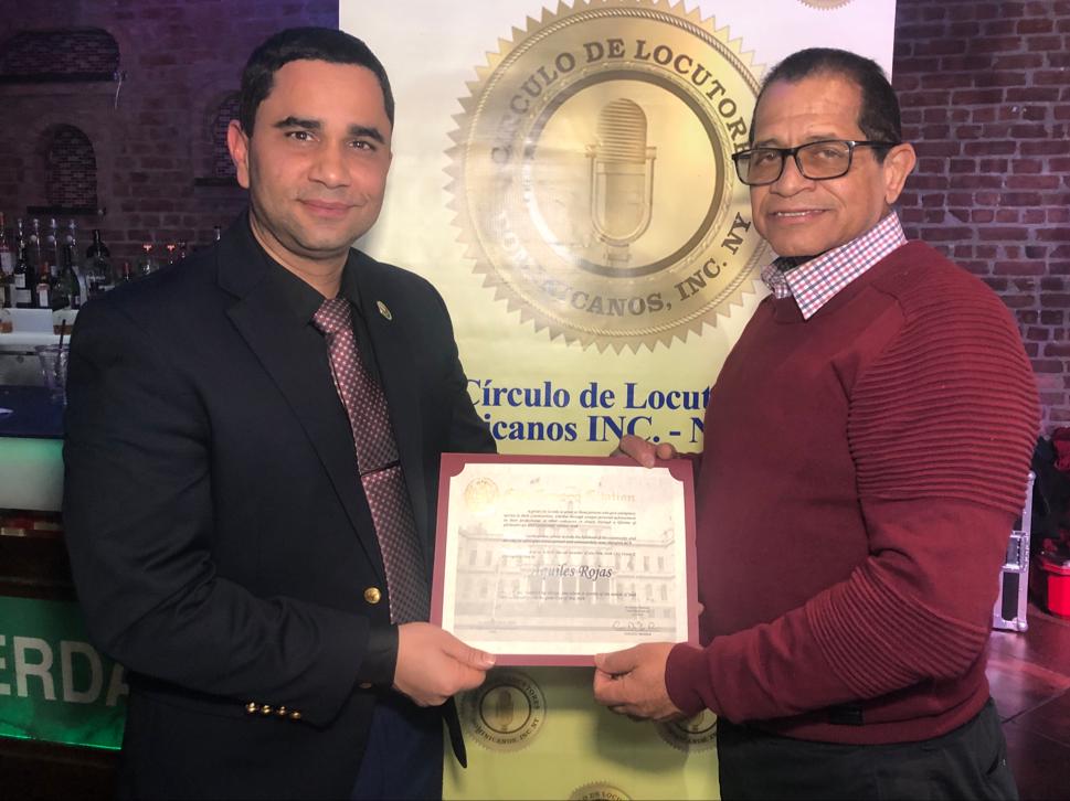 Nueva York; EUA.-La concejal por el distrito 10, Carmen De La Rosa, reconoció este viernes al reportero de Grupo de Medios Súper Canal y locutor Aquiles Rojas, en el marco de la celebración del encuentro navideño realizado por Círculo de Locutores Dominicanos , filial Nueva York, por la trayectoria y aportes del profesional de la comunicación.