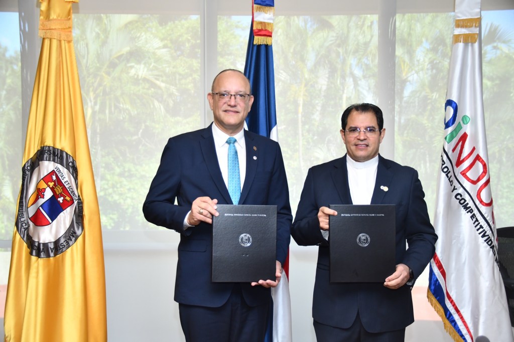 El convenio fue suscrito en la sede de la PUCMM, por el director general de Proindustria, Ulises Rodríguez y el rector de la universidad, RVDO. P. DR. Secilio Espinal Espinal.
