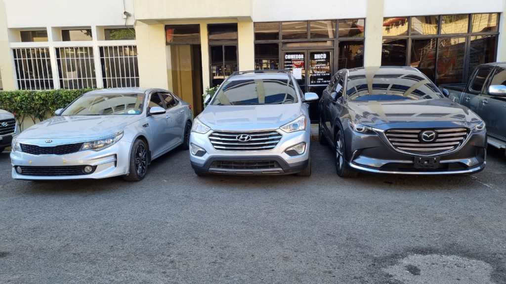 A los prevenidos se le ocupó además un carro marca Kia y dos yipetas una Hyundai Tucson y Mazda CX7, 140,350 pesos dominicanos, 97,500 pesos colombianos, 1,000 chilenos, 50 venezolanos, 20 pesos uruguayos 1,550 dólares jamaiquinos, cinco quetzales de Guatemala, varios celulares, documentos personales, entre otras evidencias.
