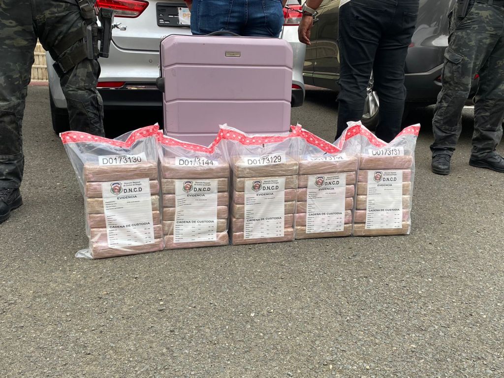 Santo Domingo.- Oficiales de la Dirección Nacional de Control de Drogas (DNCD) y miembros del Ministerio Público, apoyados por agencias de inteligencia del Estado, ocuparon 30 paquetes presumiblemente cocaína, en un operativo de seguimiento y vigilancia, realizado en el Ensanche Piantini, Distrito Nacional.