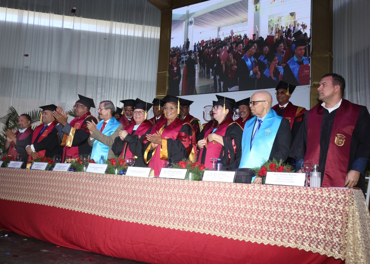 SANTIAGO. – La Universidad Nacional Evangélica UNEV, en su Recinto Santiago, entregó título a 160 nuevos profesionales en diversas carreras y especialidades, completando así 820 estudiantes de grado y postgrado, dentro de la Sexagésima Cuarta (64) graduación ordinaria, en la que participaron importantes autoridades educativas, políticas y religiosas.