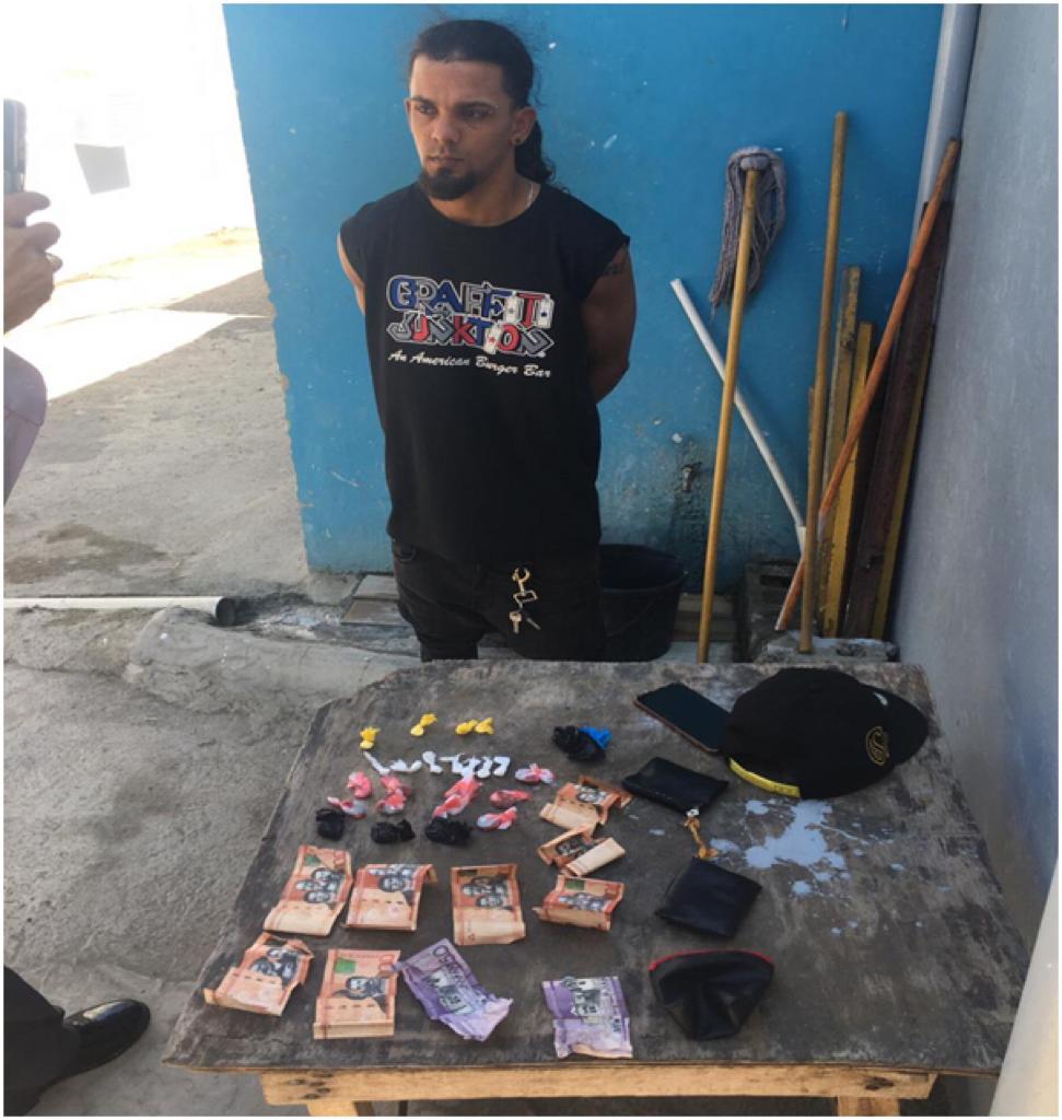 Winifer Noelrv Mármol Genao, de 28 años, residente en el sector Los Cayucos de Mao, fue sorprendido con las sustancias prohibidas por agentes preventivos, en la calle Ferson Madera de la ciudad de Mao.