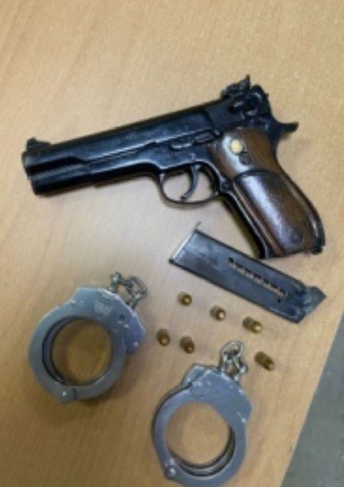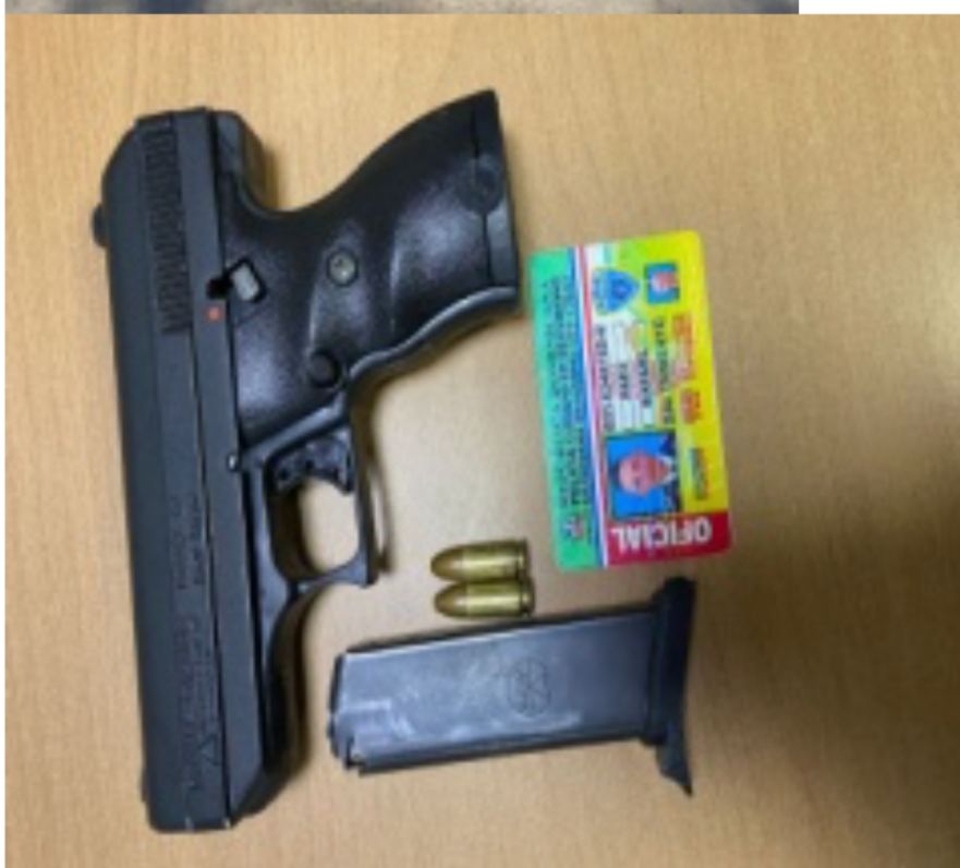 En otro hecho también resultó detenido Ramón Dilone Suazo Pérez, de 42 años, en el sector La Herradura, cuando transitaba a bordo del carro marca Kia, modelo Picanto, placa A944569, que, al ser registrado, se ocupó la pistola marca S&W, calibre 9mm, serie No. A774874, con su cargador y 6 cápsulas, sin ningún tipo de documentos, así como dos pares de esposas de metal.