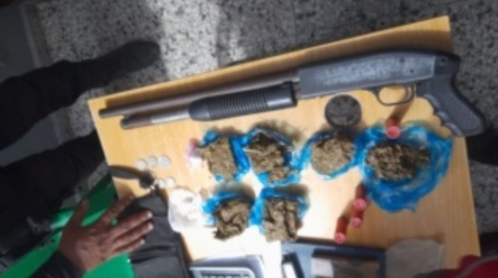 En otro hecho fueron detenidos en el sector Cienfuegos, Johan Montan Uceta, de 18 años y Jorge Medina Blanco, de 19, a quienes se les ocupó una porción de un material rocoso presumiblemente crack y seis de un vegetal de presunta marihuana, además le fue ocupada una escopeta marca Maverick, cal 12 No. MV35464U, con cuatro cartuchos.