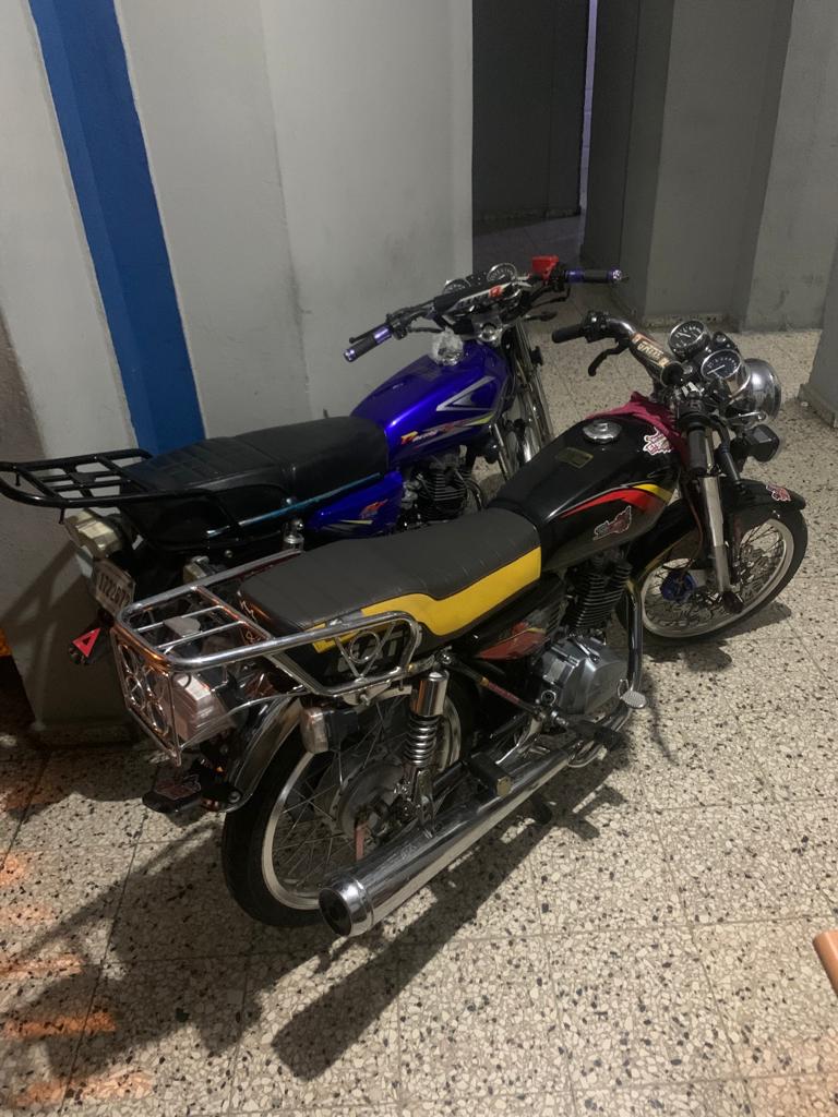Las motocicletas son una marca benge, modelo CG-200, color azul, placa K1722672, chasis LZ3JLX13PKA116671 y otra marca Gato de color negro, modelo CG-200, no porta placa, chasis IRPRPIB03MA201742, sustraídas a sus ocupantes.