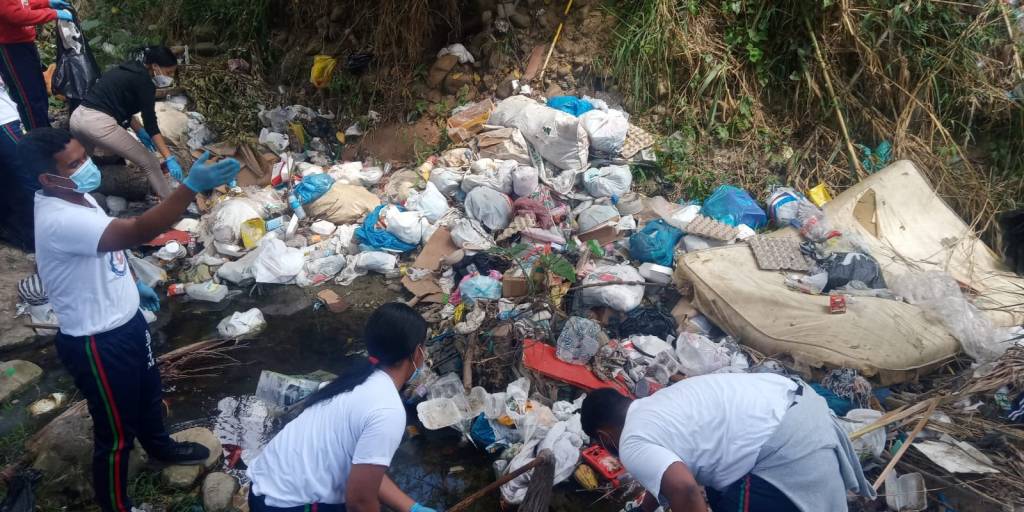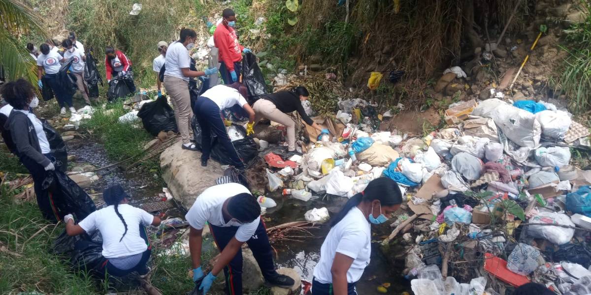 Orientados por docentes del área Ciencias Naturales y guiados por el ambientalista Yanqui Uceta, 150 estudiantes retiraron basura en un trayecto de 400 metros lineales del arroyo Gurabo.