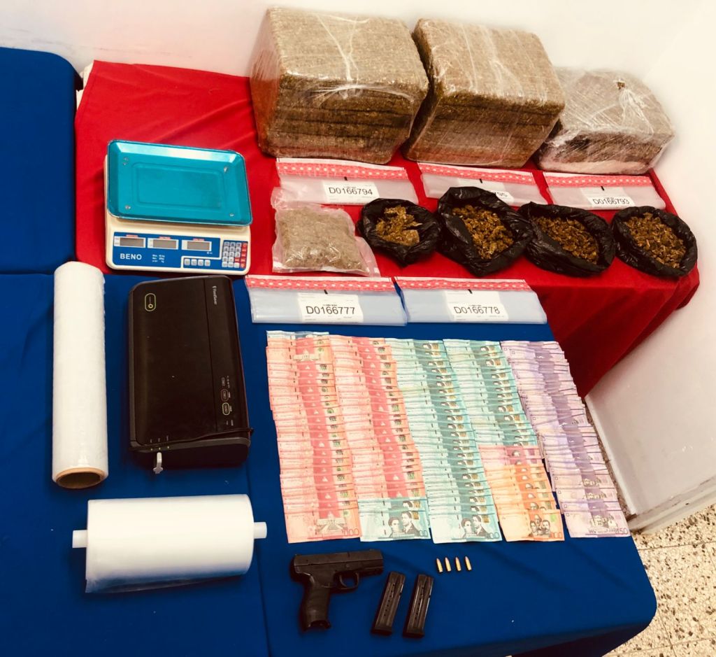 Luego, las autoridades se movilizaron a la calle 12 A, del Residencial los Prados II, del sector los Jardines del Norte, donde realizaron otra intervención legal. Aquí apresaron a un hombre, que se presume es el cabecilla de la red, a quien le confiscaron otros 33, 102 gramos de marihuana, $71, 000 pesos dominicanos, una pistola con dos cargadores y varias cápsulas, una jeepeta, entre otras evidencias.