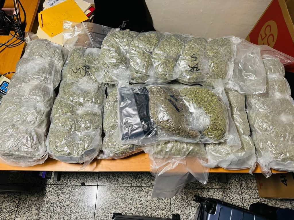 En presencia de un fiscal adjunto, se inició el protocolo de rigor y se procedió a abrir dos maletas, ocupando en una 20 paquetes, y en la otra 14, para un total de 34 paquetes del vegetal.