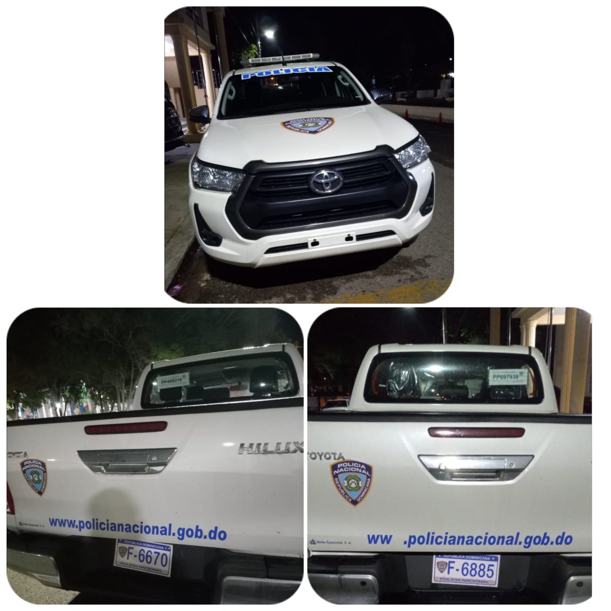 Los vehículos, dos marcas Toyota, modelo Hilux y una Nissan, fueron recibidos anoche por coronel Kelvin Marte Almonte, comandante del departamento, quien anunció los mismos entrarán de inmediato al patrullaje preventivo de la provincia y zonas aledañas.