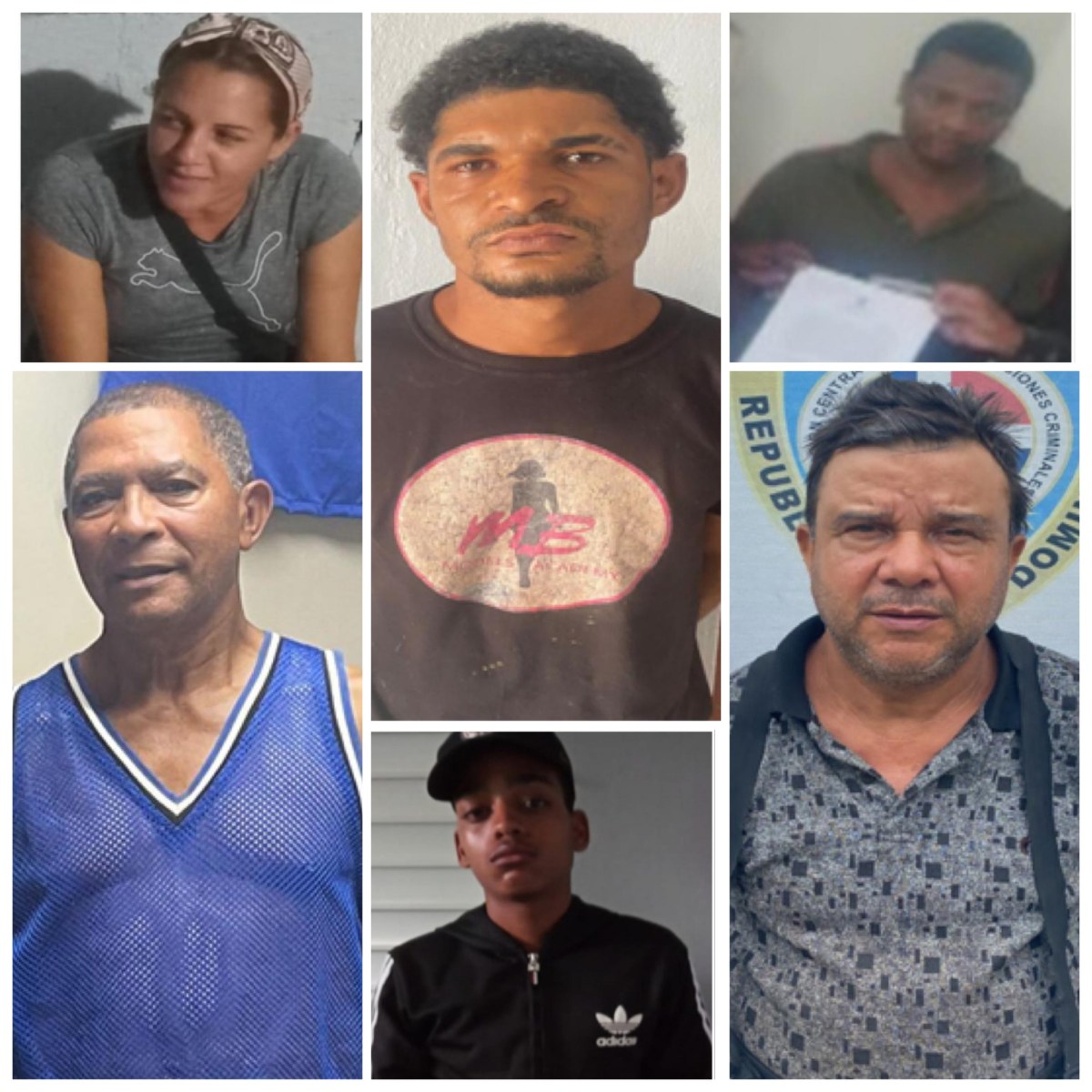 Los detenidos son Ángel Peralta García, Juan Tineo de la Rosa, Altagracia Álvarez Minaya, Carlos Javier (El Pelicano), Isaac Peralta Díaz y el ciudadano haitiano Beaulierf Roubens, todos mayores de edad.