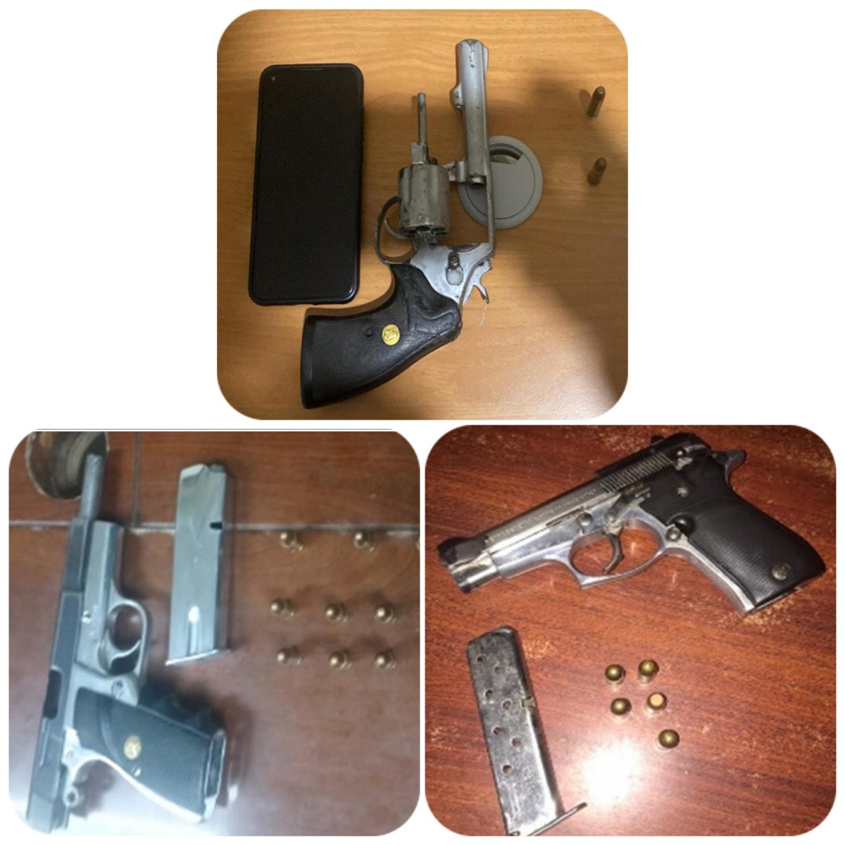 Las armas ocupadas son la pistola marca Carandai, serie G11022, con su cargador y treces capsulas; un revólver con la numeración y marca ilegibles, con cinco cápsulas, así como la pistola marca Beretta, calibre 380, serie F06678Y, con cinco capsulas en su cargador.